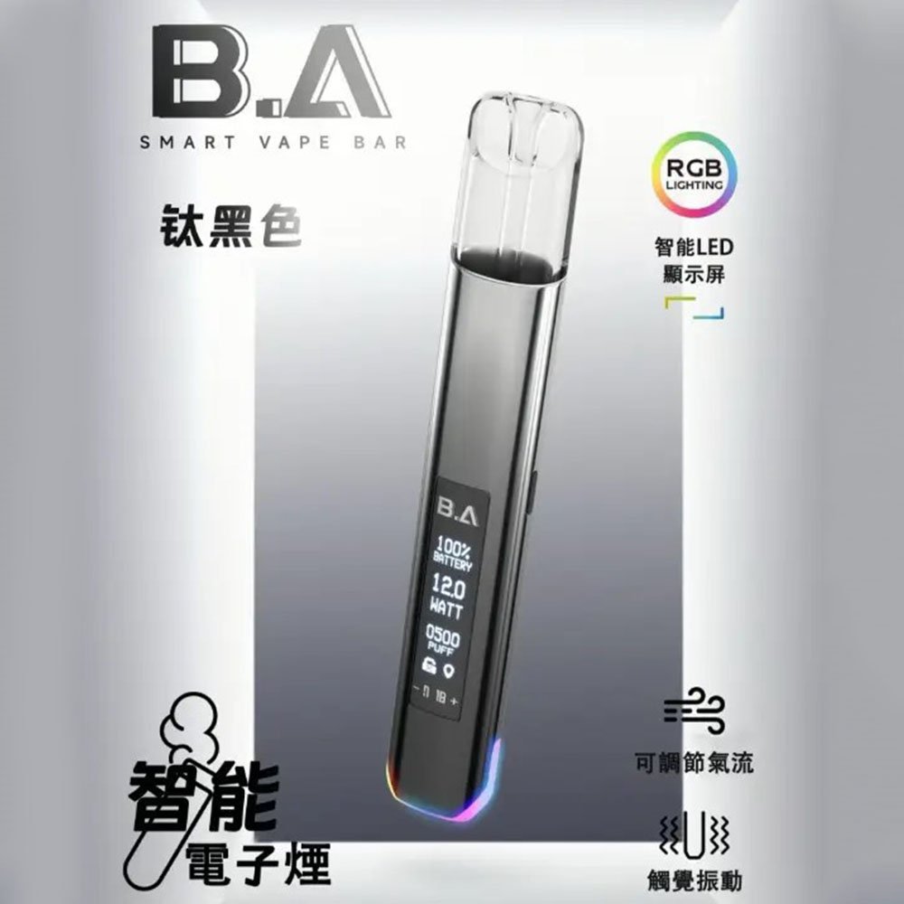 全新B.A一代主機 全新設計LED可調式顯示屏主機,為用戶提供了一款集時尚設計、智能溫控與高效續航於一體的高端Vape主機體驗。B.A一代主機採用高端漆面工藝,呈現獨特的光澤和質感,這款主機不僅時尚大氣,更是能彰顯使用者的高貴品味和獨特個性。